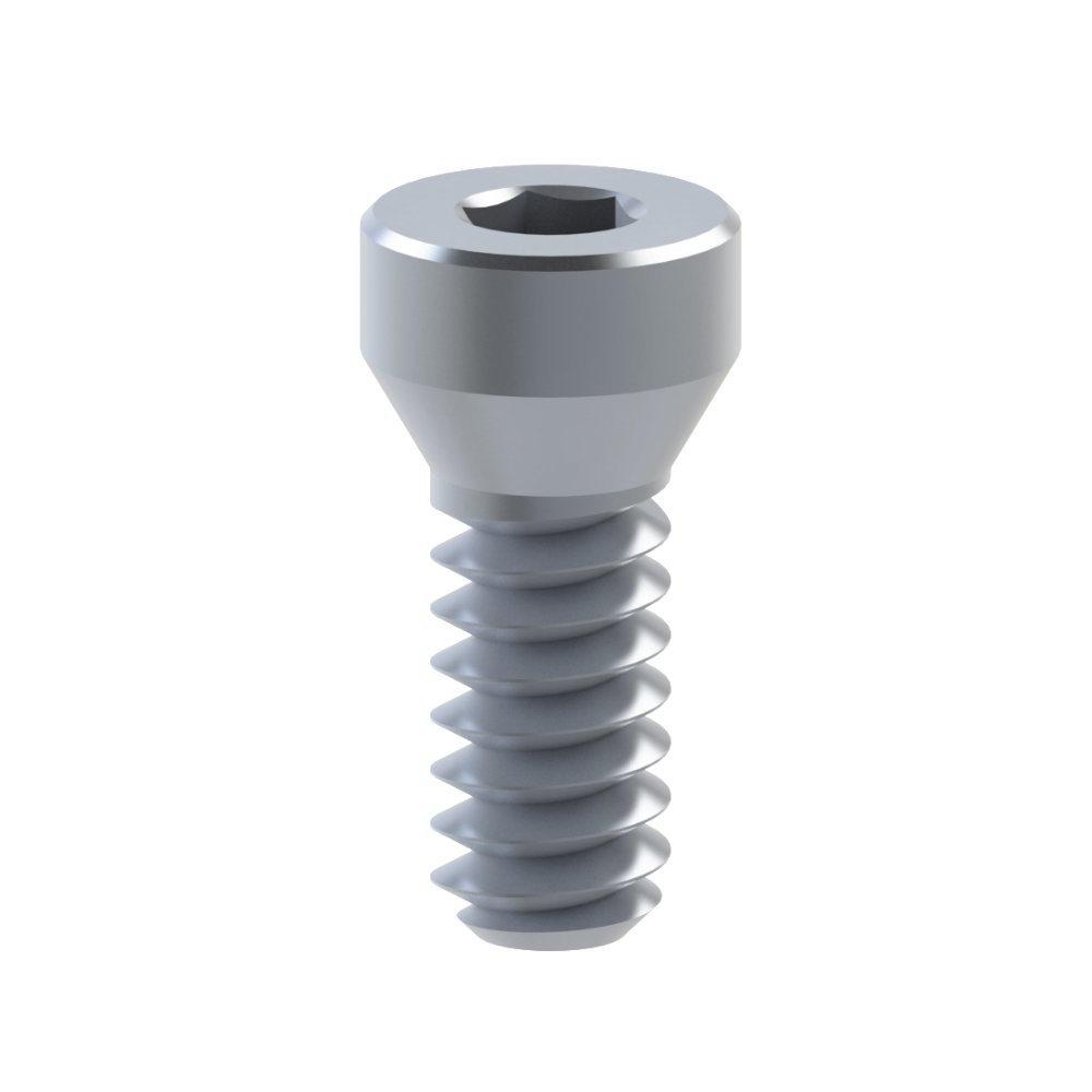 Grade V titanium abutment screw. Maximum recommended torque 30Ncm. Grade V titanium it is significantly stronger than Grades I to IV titanium while having the same stiffness. Titanium Grade V is an excellent combination of strength, corrosion resistance and biocompatibility.