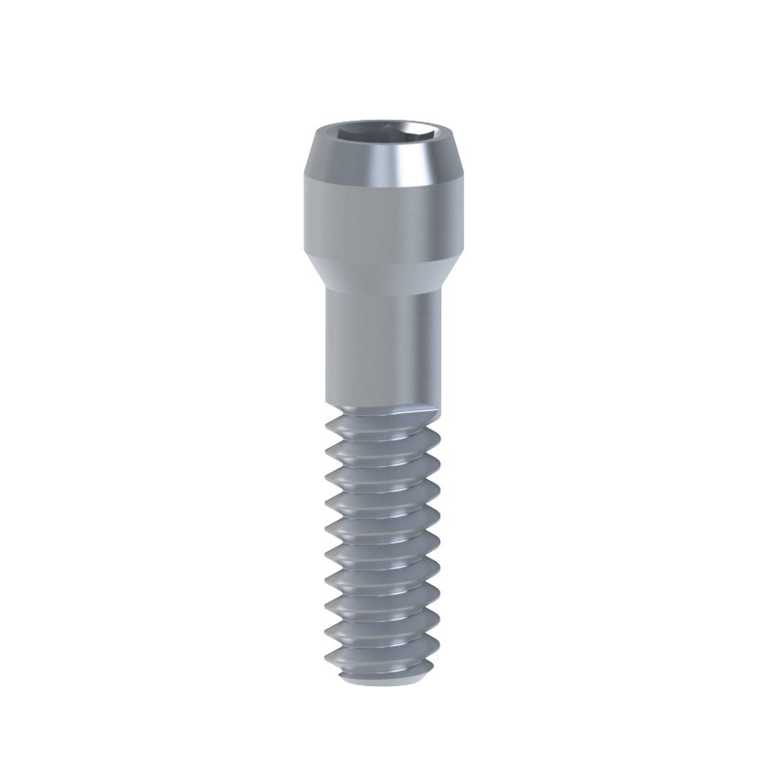 Grade V titanium abutment screw. Maximum recommended torque 30Ncm. Grade V titanium it is significantly stronger than Grades I to IV titanium while having the same stiffness. Titanium Grade V is an excellent combination of strength, corrosion resistance and biocompatibility.