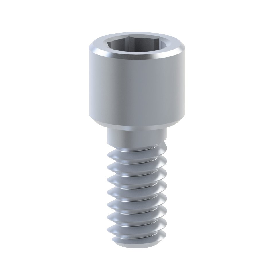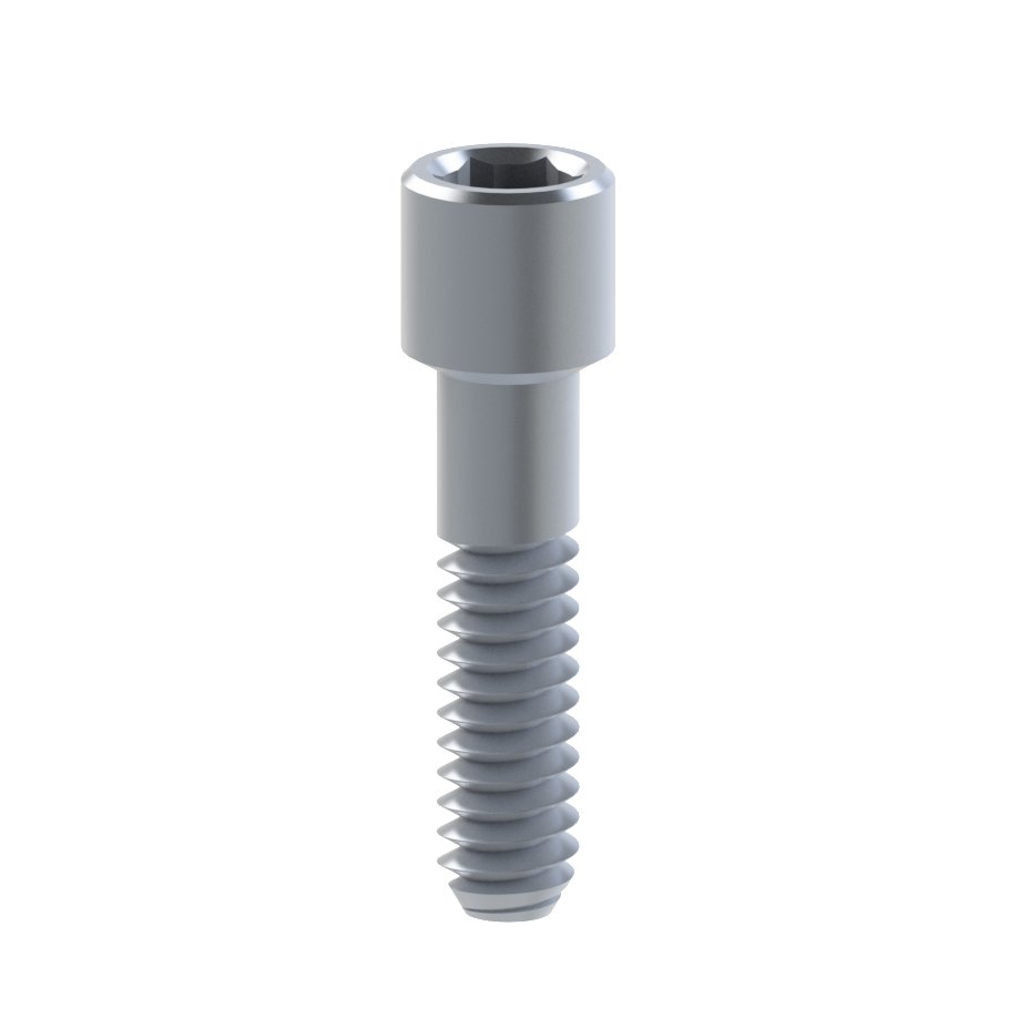 Grade V titanium abutment screw. Maximum recommended torque 30Ncm. Grade V titanium it is significantly stronger than Grades I to IV titanium while having the same stiffness. Titanium Grade V is an excellent combination of strength, corrosion resistance and biocompatibility.